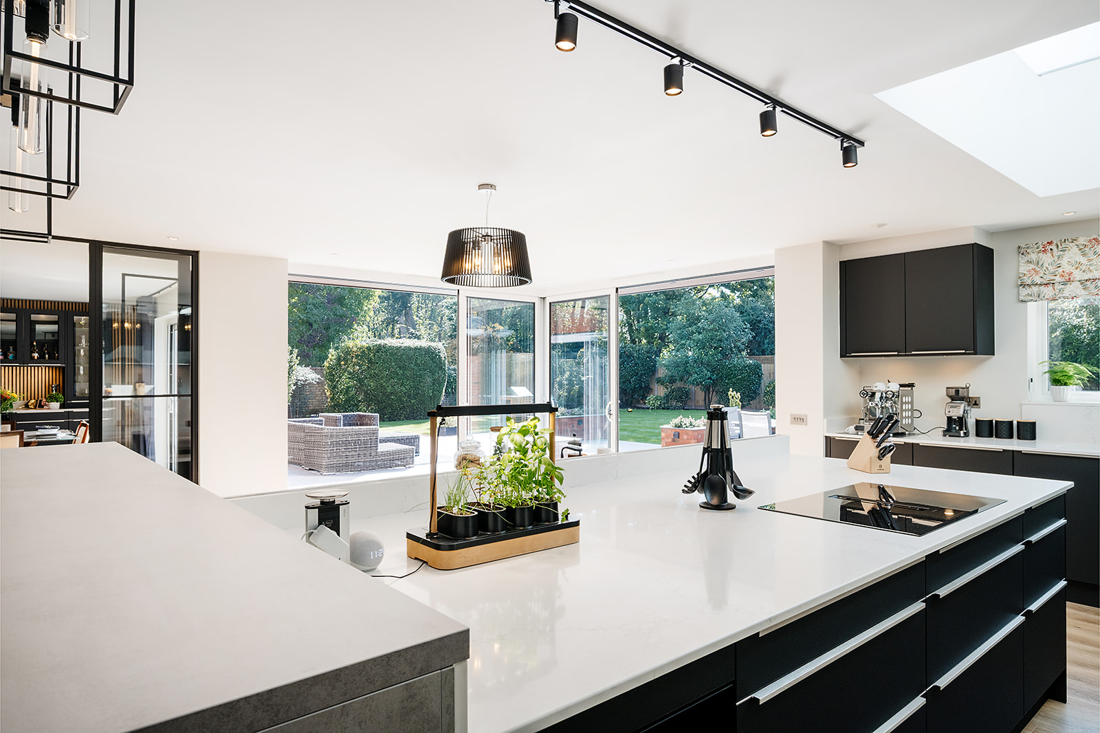 Discover how our clients in Esher, Surrey, transformed their dark, disjointed kitchen into a stunning open-plan family space featuring black matt cabinetry, white quartz work surfaces, and seamless flow between the kitchen, dining room, and garden.