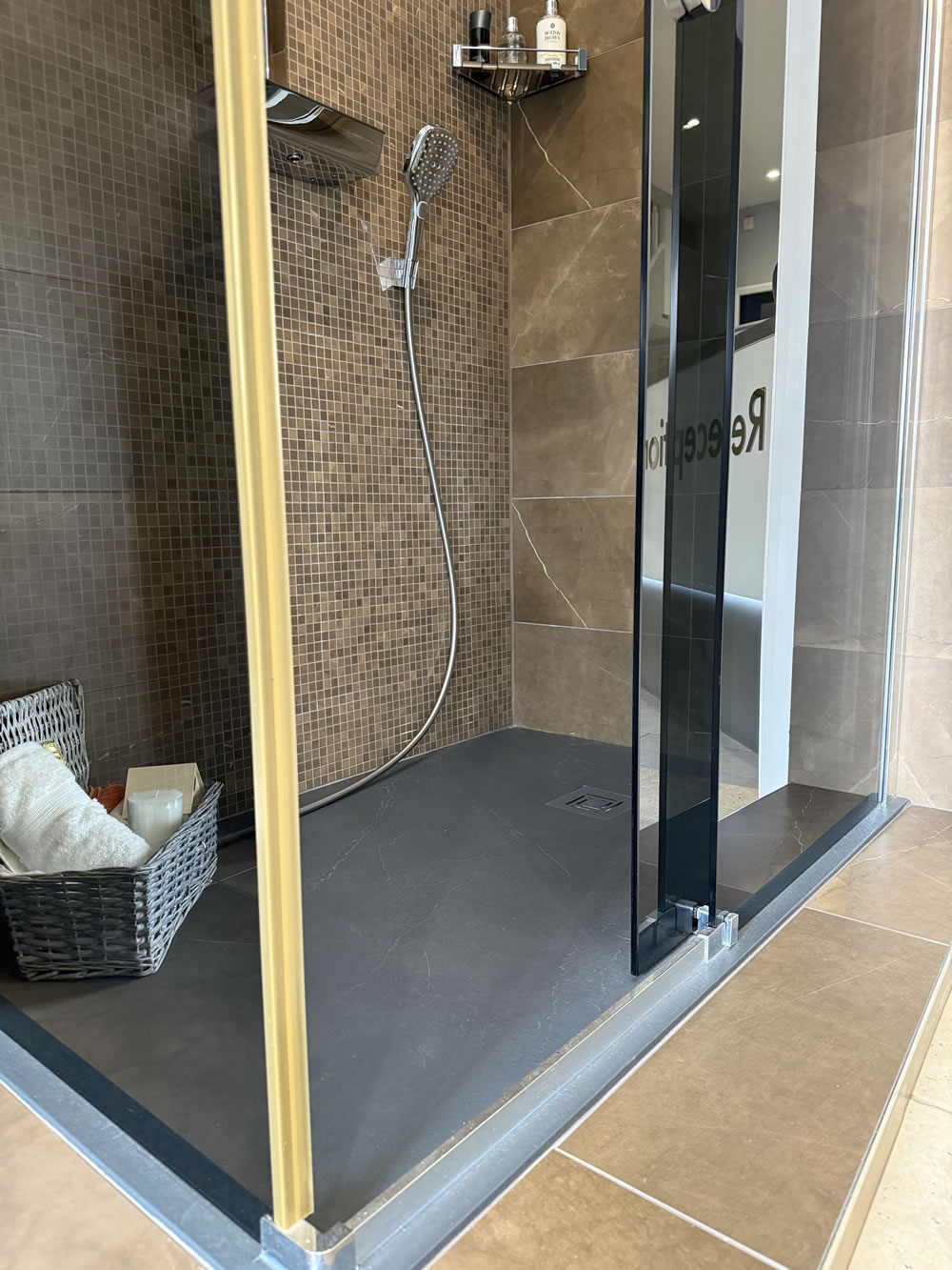Merlyn Truestone Black slate effect low profile shower tray.